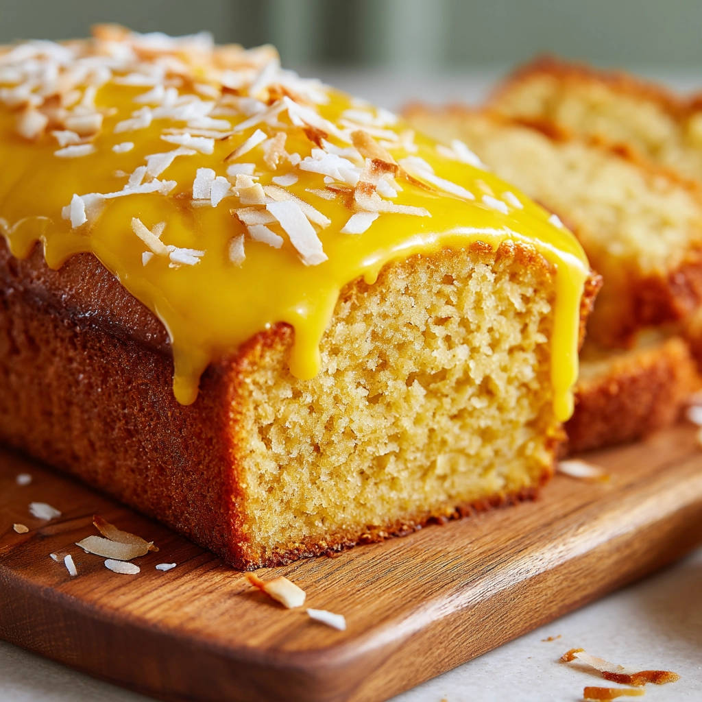 - Fertigstellen: Sobald der Kuchen vollständig ausgekühlt ist, verteile den Zitronenguss darüber. Lass ihn an den Seiten herunterlaufen. Bestreue den noch feuchten Guss sofort mit den gerösteten Kokoschips, damit diese gut haften bleiben.