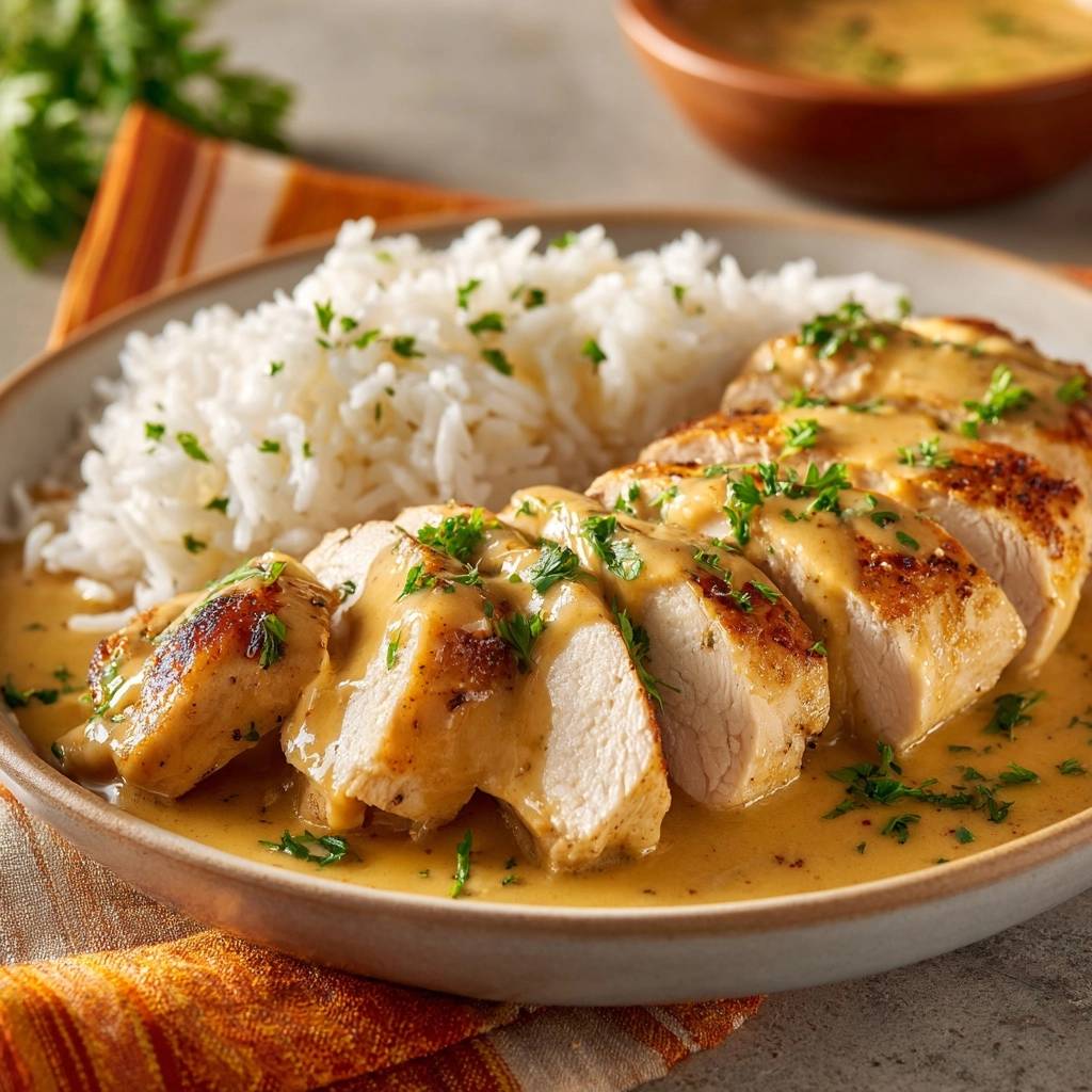 Saftiges Hähnchen in Cremiger Sauce mit Reis – Rezept