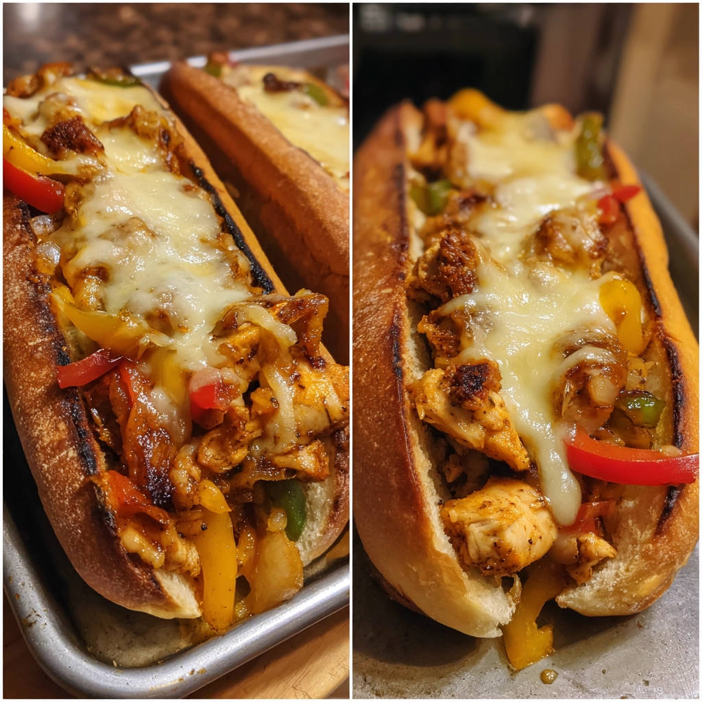 Genießt euer hausgemachtes Saftiges Hähnchen-Cheesesteak Sandwich!