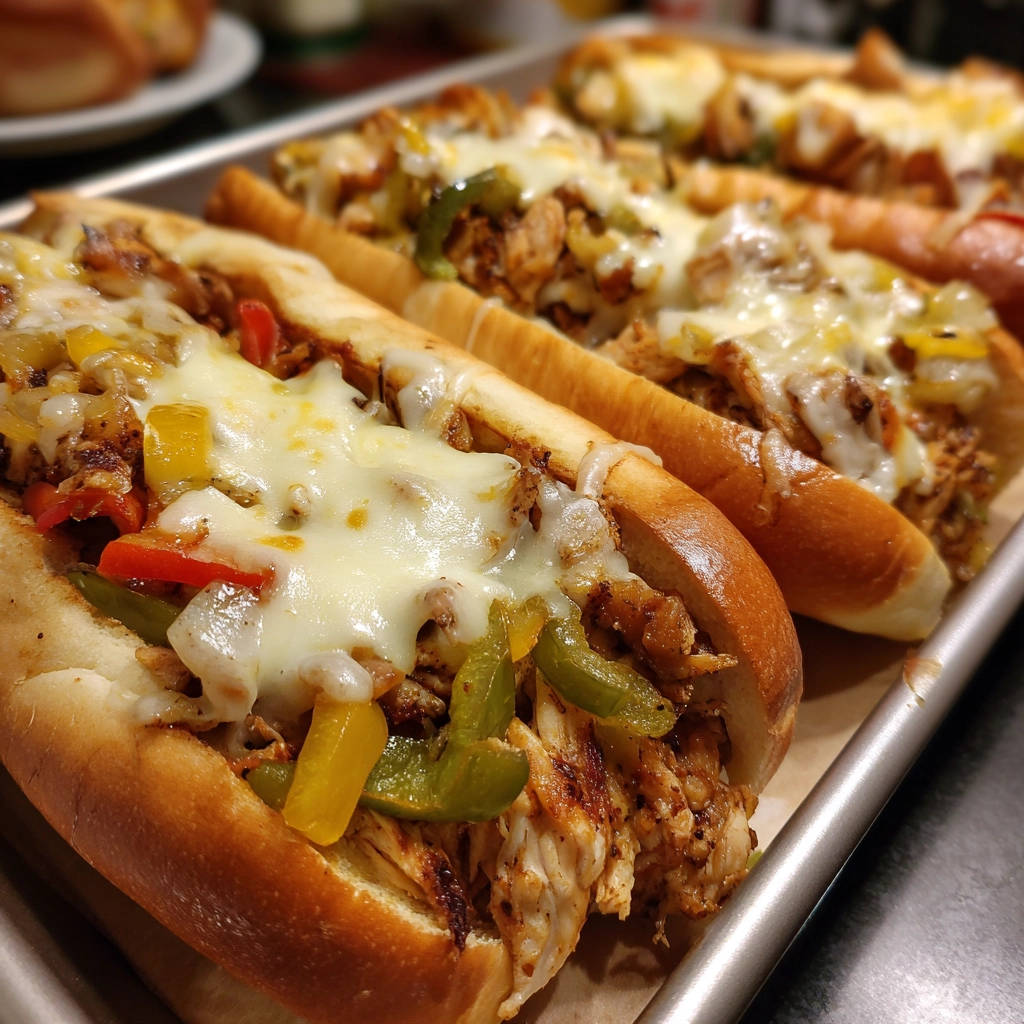 Saftiges Hähnchen-Cheesesteak Sandwich