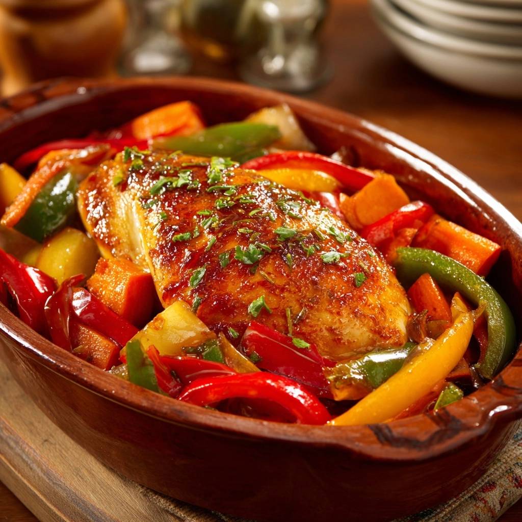 Saftiges Ofenhähnchen mit Paprika-Gemüse