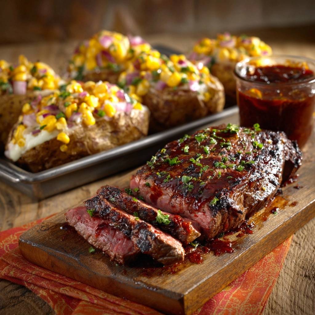 Stell dir vor, du beißt in ein Ribeye-Steak, das außen knusprig knistert und innen so saftig explodiert, dass der Fleischsaft dir fast übers Kinn läuft. Dazu diese fluffigen Ofenkartoffeln, gefüllt mit geschmolzenem Käse, süßem Mais und knackiger Zwiebel – ein Bissen, und du bist im Food-Himmel. Ich hab das Problem trockener Steaks selbst ewig gehabt, bis die Reverse-Sear-Methode alles verändert hat.