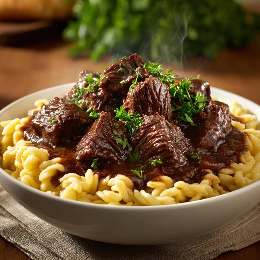Saftiges Rindergulasch mit Spätzle – Rezept