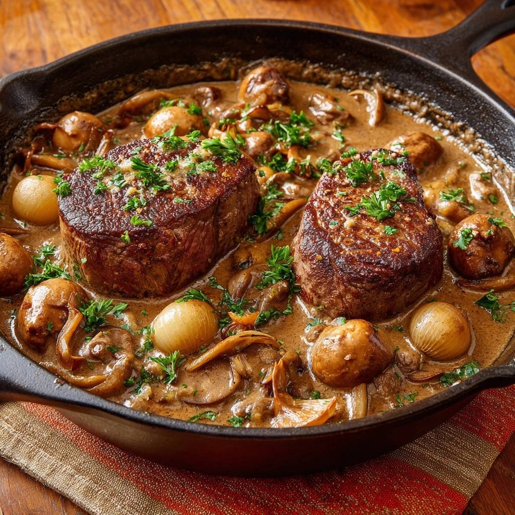 Der Biss ins Steak knackt so schön, und dann fließt der Saft heraus, warm und aromatisch. Dazu die cremige Champignonsoße, die sich perfekt um das Fleisch schmiegt. Du spürst sofort, warum das dein neues Lieblingsgericht wird.