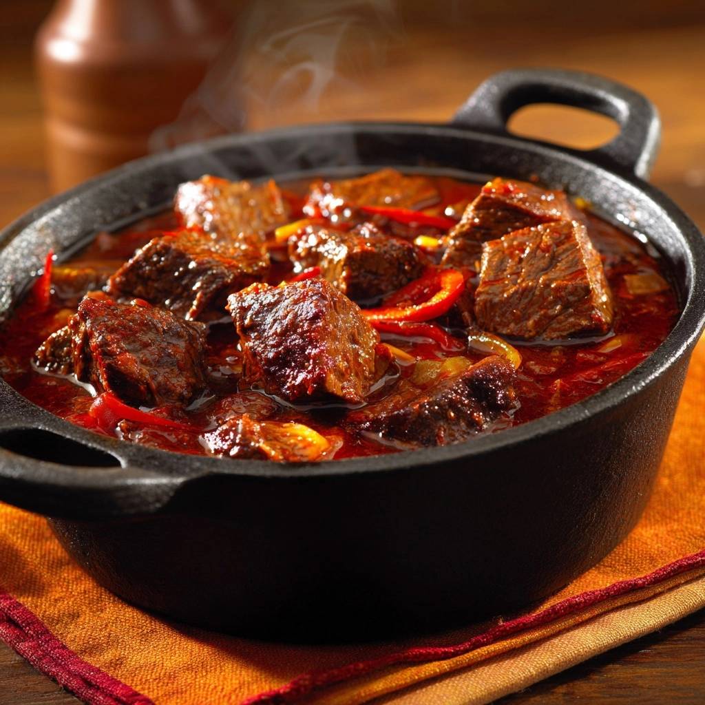 Stell dir vor, du schneidest in ein Stück Rindfleisch, das so zart zerfällt, als wäre es Butter. Die Soße, dick und aromatisch von Paprika und Tomaten, umhüllt jeden Bissen mit Süße und Würze. Genau das passiert bei diesem Gericht immer, wenn du den Anbrat-Trick richtig machst.