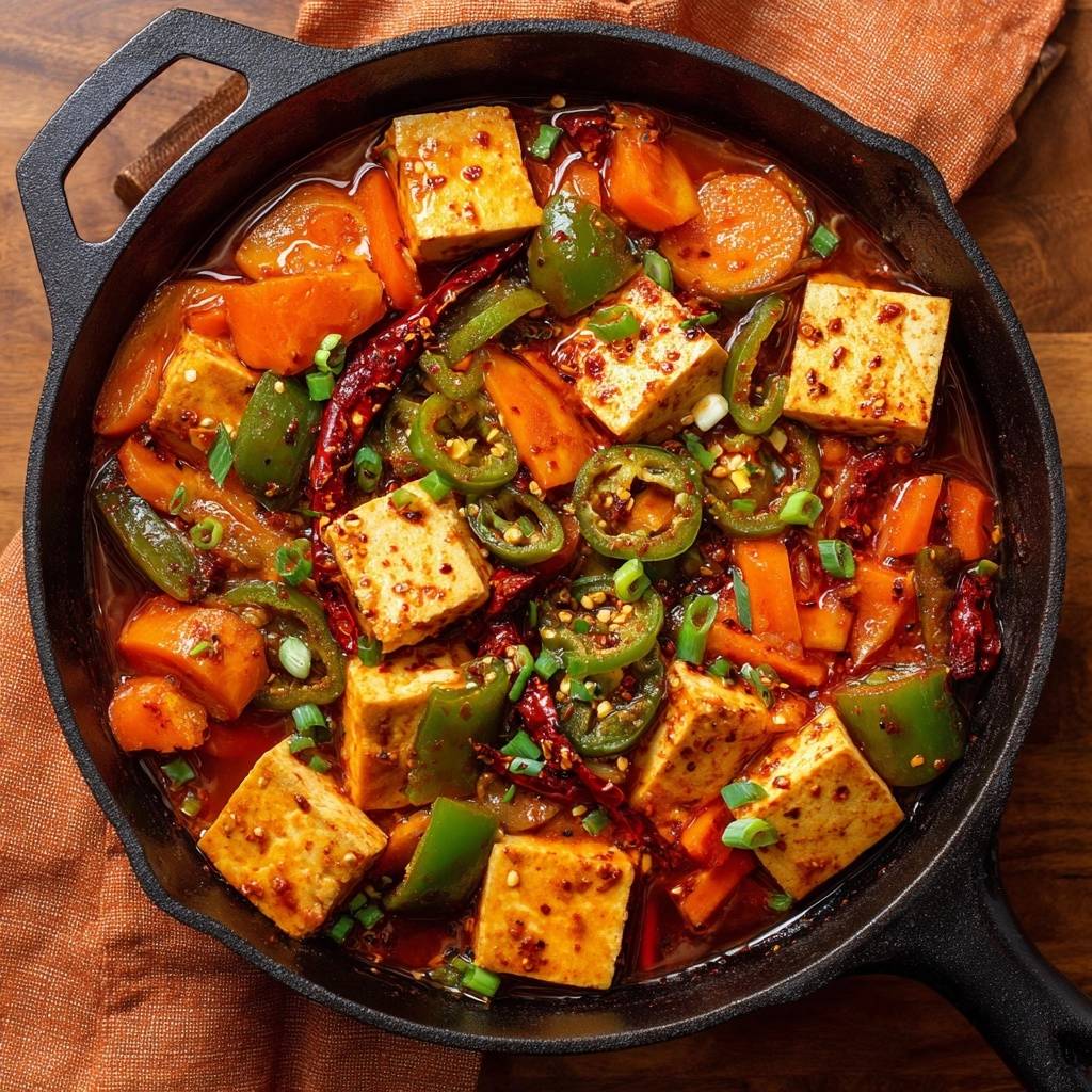 Der erste Bissen knackt so herrlich, und dann explodiert die scharfe Würze auf deiner Zunge. Frischer Jalapeño mischt sich mit der knusprigen Tofu-Kruste, Karotten bringen Süße rein, und Frühlingszwiebeln sorgen für den Biss. Ich hab Tofu jahrelang gehasst, weil er immer matschig wurde und die Soße nur aufsaugte wie ein Schwamm.