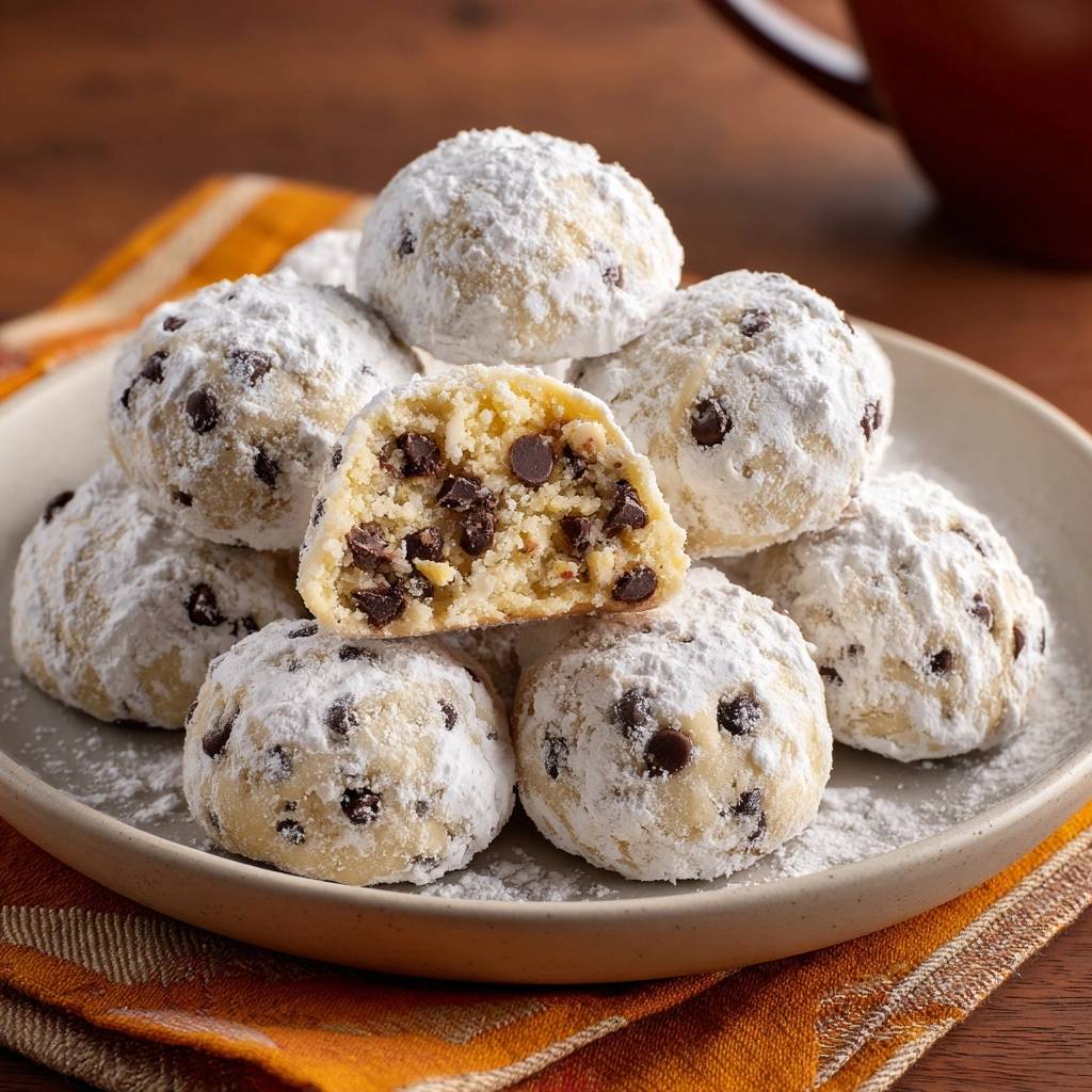 Das änderte sich mit meinem Kühl-Trick. Nach Jahren im Backfieber hab ich’s rausgefunden: Der Teig muss kalt werden, damit das Fett bindet und nix auseinanderfällt. Jetzt sind diese Schoko-Chip-Schneebällchen formstabil, schmelzen ideal und haben den Biss, den du liebst. Kein Bröckeln mehr, nur Freude pur. Du backst sie in unter einer Stunde plus Kühlzeit, und hast 40 Stück für die ganze Familie.