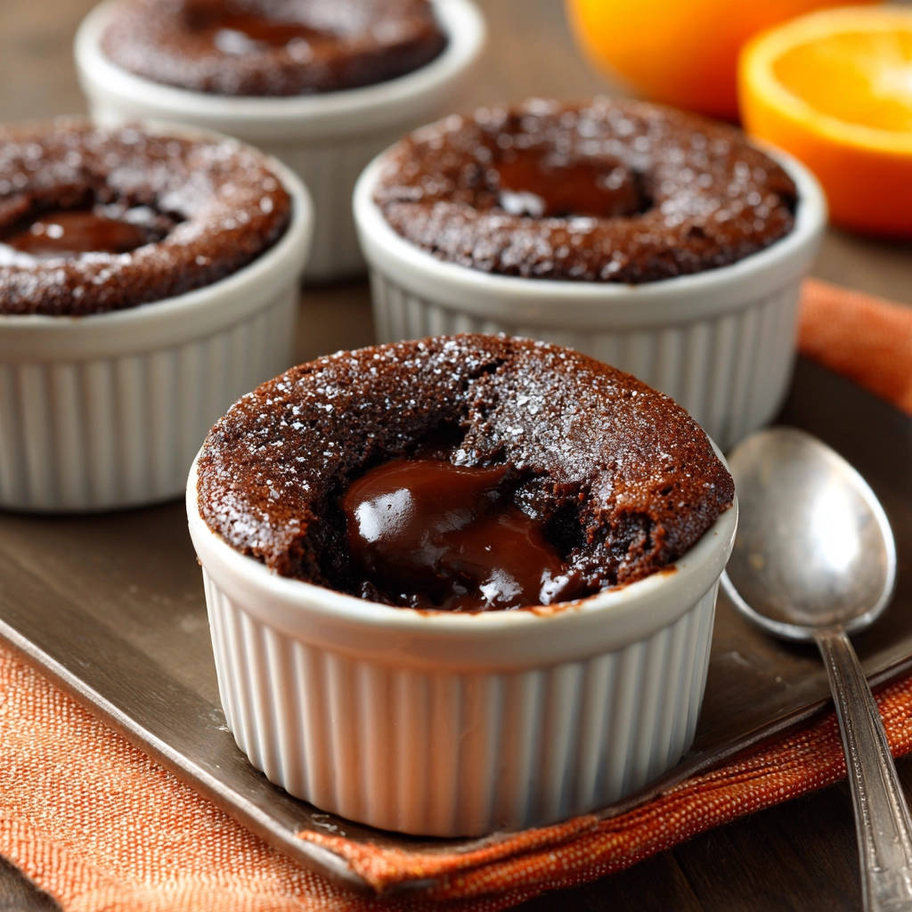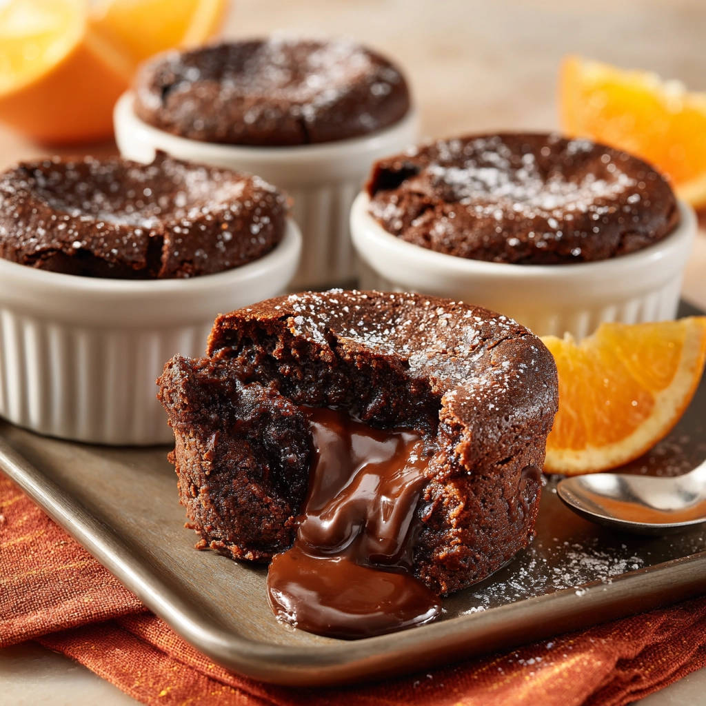 • Zusätzlich benötigst du: Butter und Mehl oder Kakaopulver, um deine Förmchen vorzubereiten. Dies ist super wichtig, damit sich die Küchlein nach dem Backen leicht stürzen lassen. Kakaopulver statt Mehl sorgt für einen intensiveren Schoko-Look am Rand. Puderzucker zum Bestäuben für die klassische Optik und Orangenscheiben zur Deko, falls du eine fruchtige Note hinzufügen möchtest (optional).