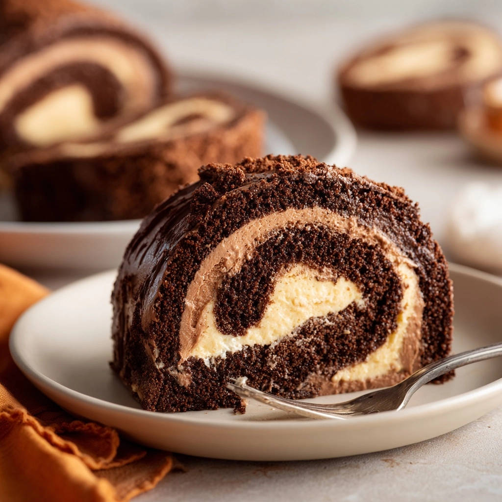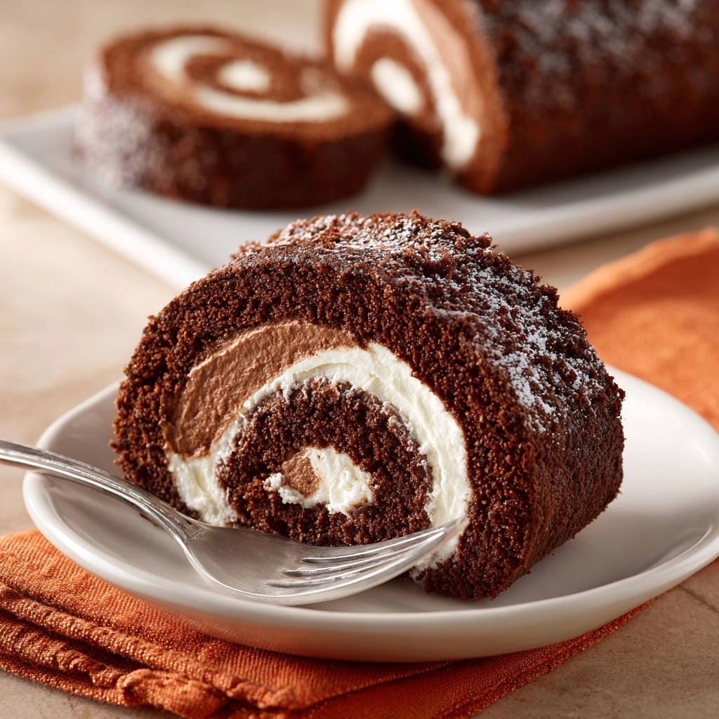 Diese Schokoladen-Biskuitrolle mit Doppelcreme ist weit mehr als nur ein einfaches Gebäck. Sie ist eine Demonstration von Eleganz und Geschmack, die mit einem cleveren Trick die größte Hürde beim Biskuitbacken aus dem Weg räumt.