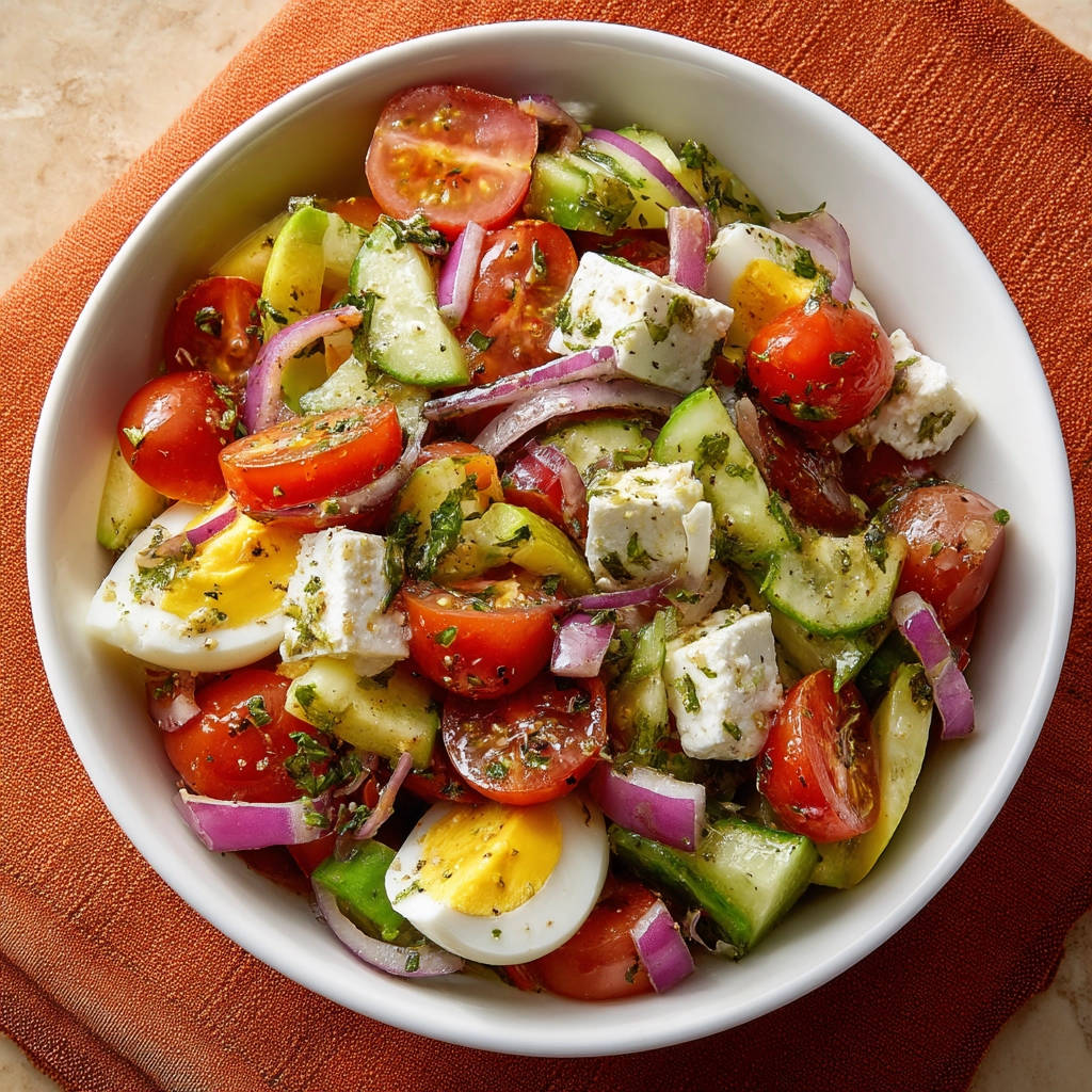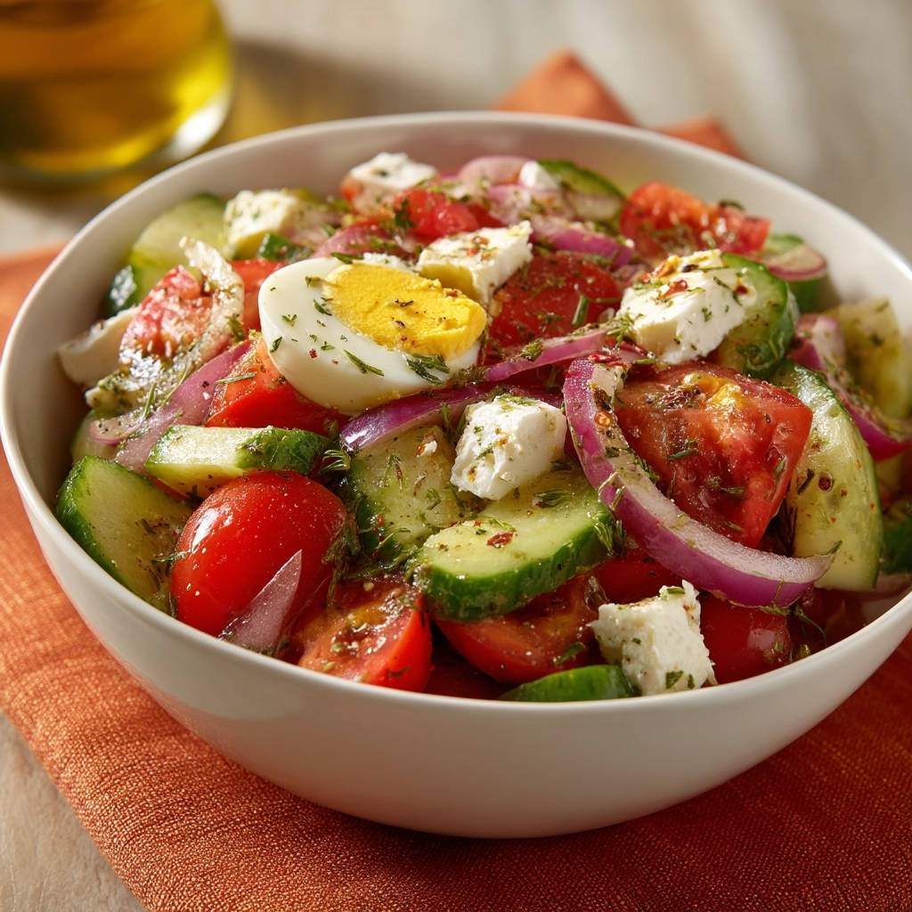 Warum dieser Sommerlicher Tomaten-Gurken-Salat mit Feta und Ei einfach unwiderstehlich ist