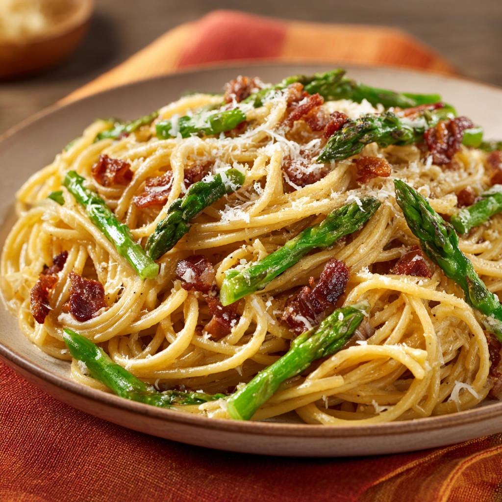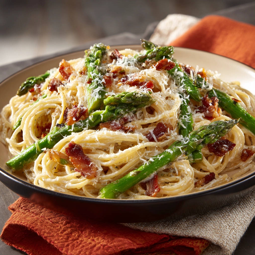 - Saisonales Highlight: Grüner Spargel hat einen herrlich frischen, leicht nussigen Geschmack und ist in Kombination mit Pasta und Bacon ein echter Genuss.