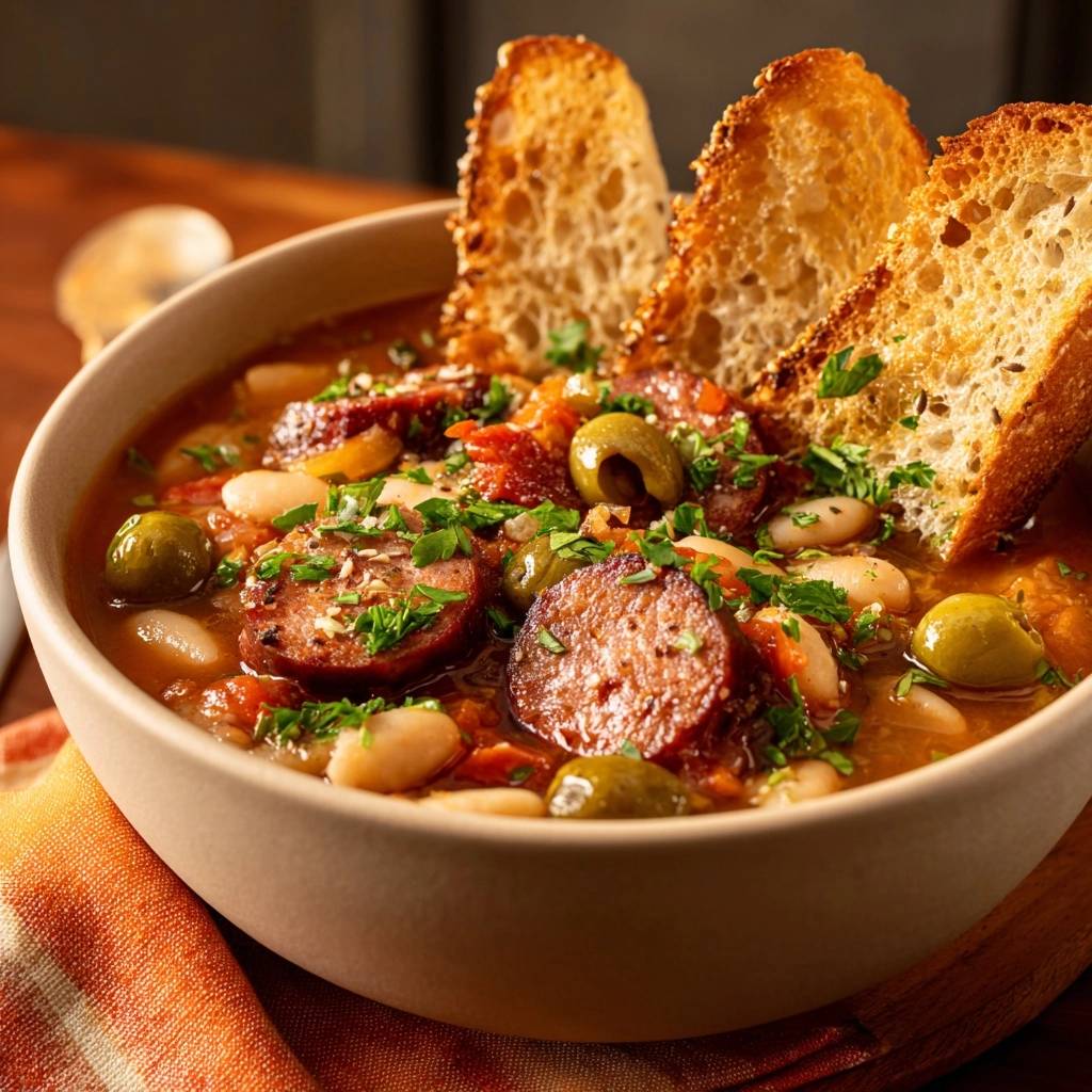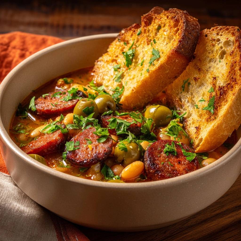 Stell dir vor, du löffelst den ersten Bissen dieses Eintopfs. Die Bohnen haben perfekten Biss, die Oliven platzen saftig auf, und ein Hauch von Rauch aus der Chorizo umhüllt alles. Du riechst den mediterranen Duft schon in der Küche, und plötzlich bist du in Spanien, ohne Gepäck.