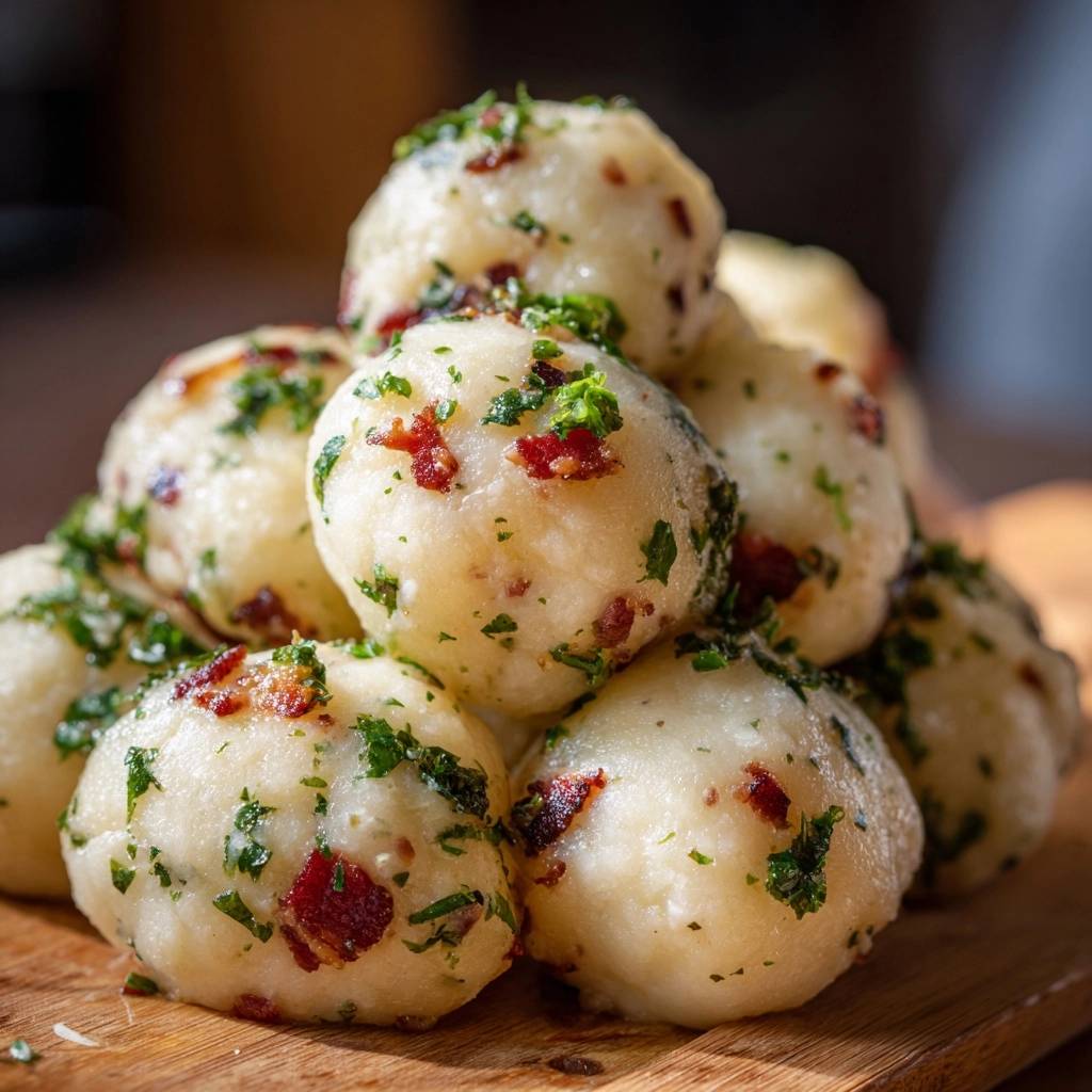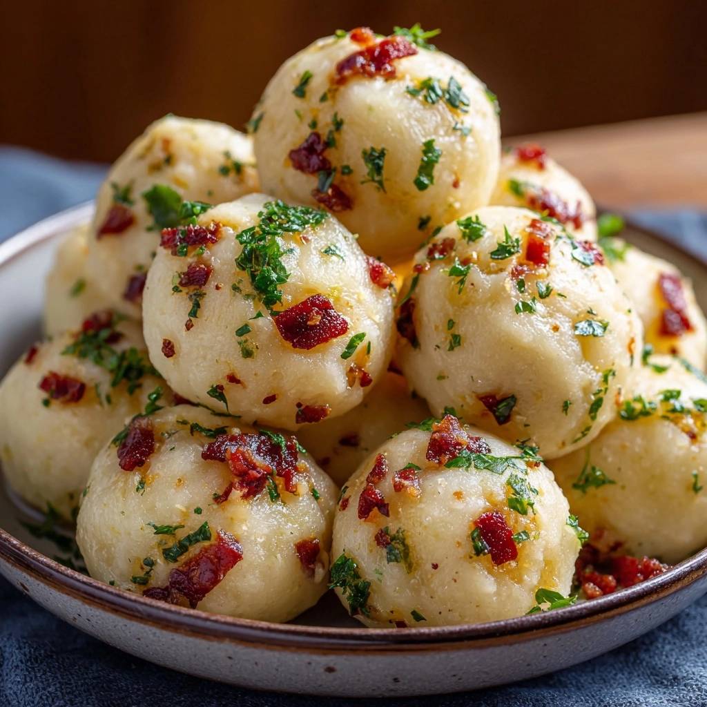 Der erste Bissen explodiert im Mund: fluffige Kartoffelmasse, knusprige Speckstückchen und ein Hauch von frischer Petersilie. Die Knödel halten perfekt zusammen, saftig innen, glatt außen. Du spürst die Wärme der Butter, die alles umhüllt. Solche Speck-Kartoffelknödel machen jeden Braten zum Festmahl.