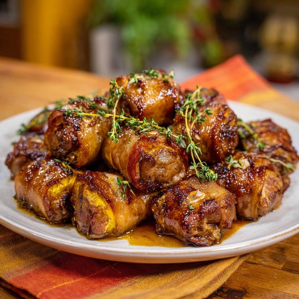 Stell dir vor, du beißt herzhaft in ein speckumwickeltes Kürbisröllchen. Der Speck knackt durch, innen platzt der butterweiche Butternusskürbis saftig auf. Thymian und Honig karamellisieren dazu, herbstlicher Duft erfüllt die Küche. Das ist pure Freude beim Knabbern.