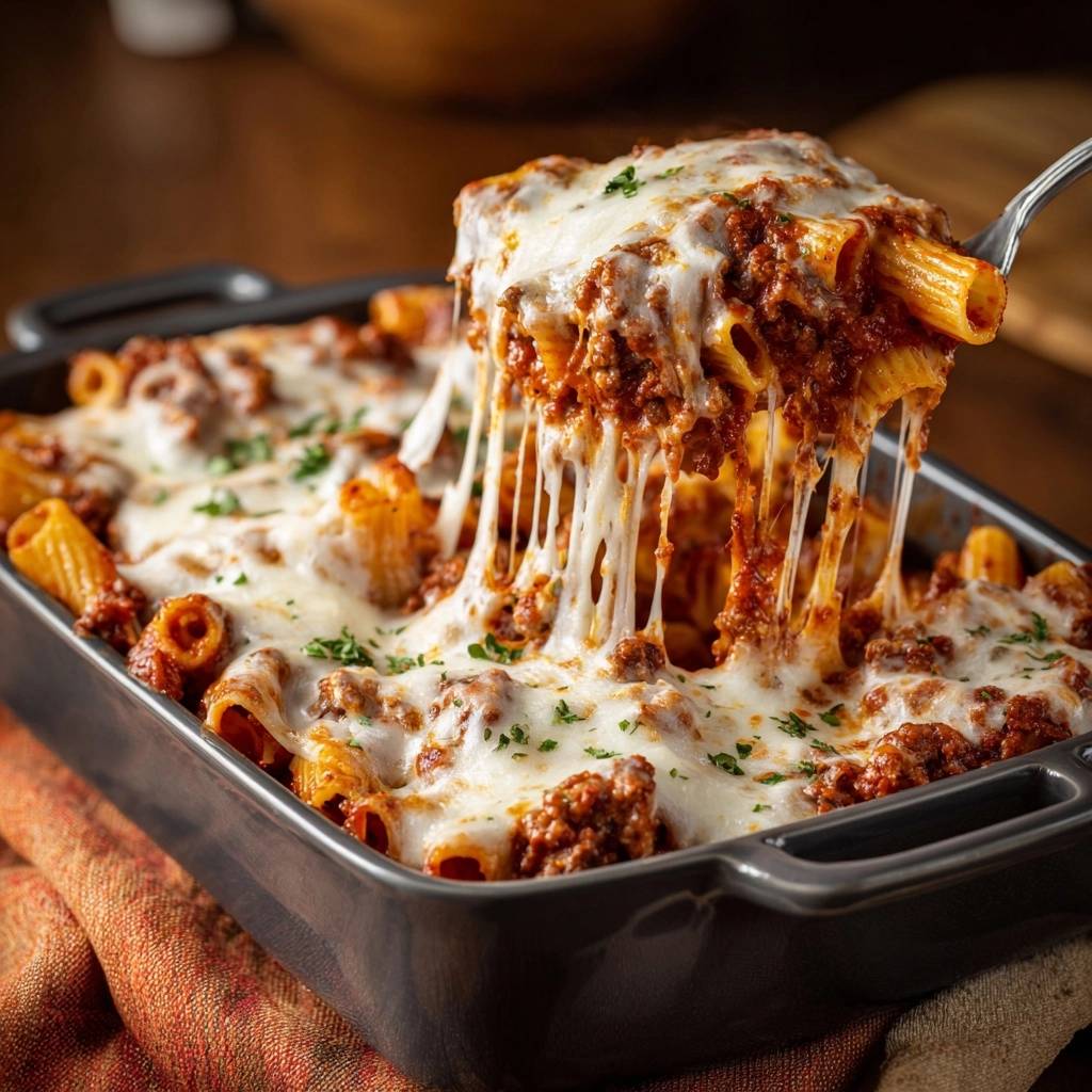 Stell dir vor, du beißt in den ersten Bissen dieses überbackenen Rigatoni-Auflaufs mit Hackfleisch. Die Nudeln haben genau die richtige Bite, das saftige Rinderhackragout explodiert im Mund vor Tomatenaroma und der Käse zieht goldbraun und knusprig. Du riechst schon beim Öffnen des Ofens den würzigen Oregano und spürst, wie der ganze Tisch sich versammelt.