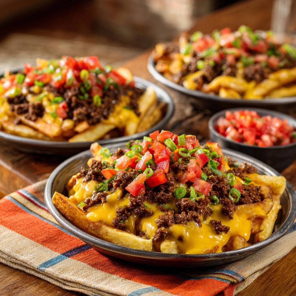 Stell dir vor, du ziehst eine goldbraune Pommes aus einem Berg von geschmolzenem Käse und würzigem Fleisch. Der erste Biss kracht richtig, während die cremige Sauce deine Zunge umschmeichelt.