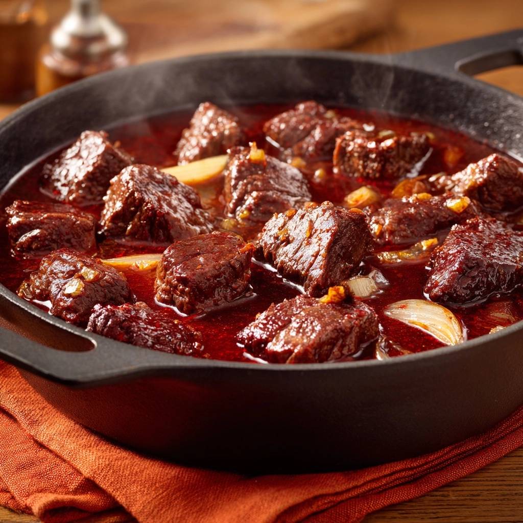 Stell dir vor, du nimmst die erste Gabel dieses Ungarischen Rindergulaschs in den Mund. Das Fleisch schmilzt butterzart auf der Zunge, umhüllt von einer sämigen Sauce, die nach geröstetem Paprika und Zwiebeln duftet. Jeder Bissen explodiert mit Wärme und Tiefe, perfekt für kühle Abende.