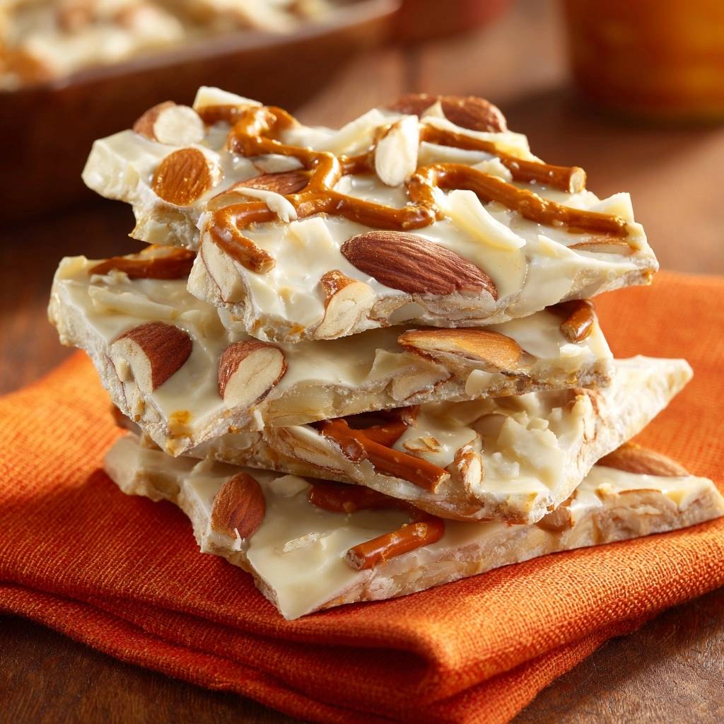 Weiße Schoko-Brezel-Bark mit Mandeln (Nie wieder weiche Brezeln!)
