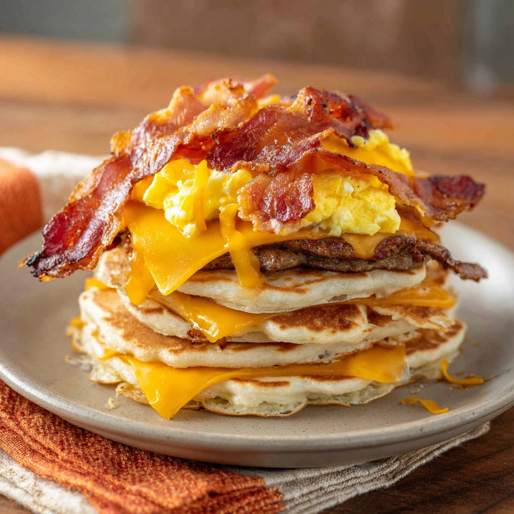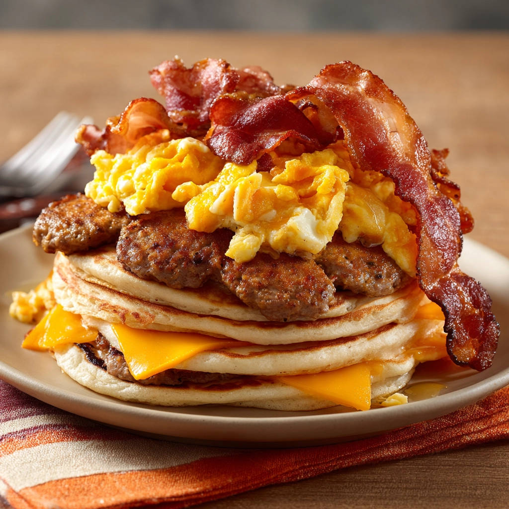 XXL Frühstücks-Stack mit Speck, Ei und Käse