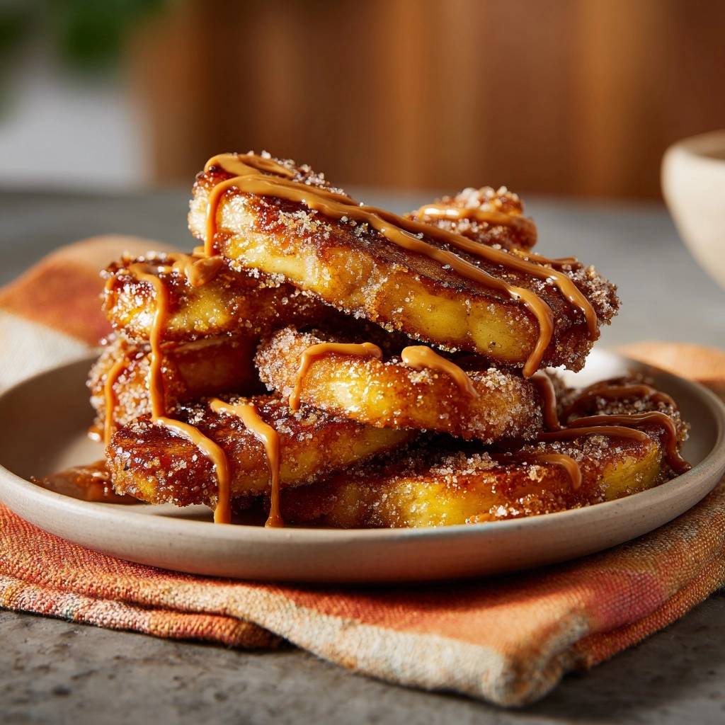 - Auf Teller stapeln, mit warmer Karamellsoße übergießen und sofort genießen. Perfekt fluffig innen, knusprig außen – garantiert kein matschiger Kern mehr!
