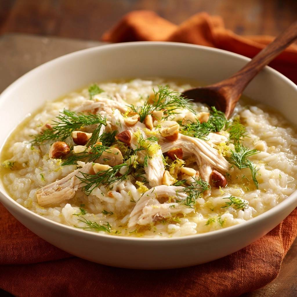 Stell dir vor, du löffelst eine Creme, die so seidig ist, dass sie fast vom Teller gleitet, während im nächsten Moment der knackige Widerstand einer gerösteten Haselnuss und die Frische von Zitrone deine Sinne wecken. Dieses Zitronen-Hähnchen-Risotto mit gerösteten Haselnüssen ist genau dieses Erlebnis.
