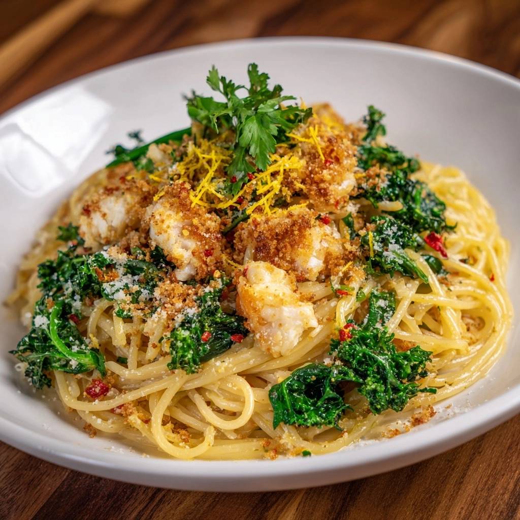 Der Kontrast zwischen der cremigen, leicht säuerlichen Zitronensauce und diesen goldbraunen Knusper-Inseln auf dem Fisch macht dieses Gericht zu einem Erlebnis, das weit über eine normale Alltagspasta hinausgeht.